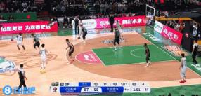 曾凡博起飞欲扣 付豪凶狠犯规将其拽倒 裁判回看后普通犯规